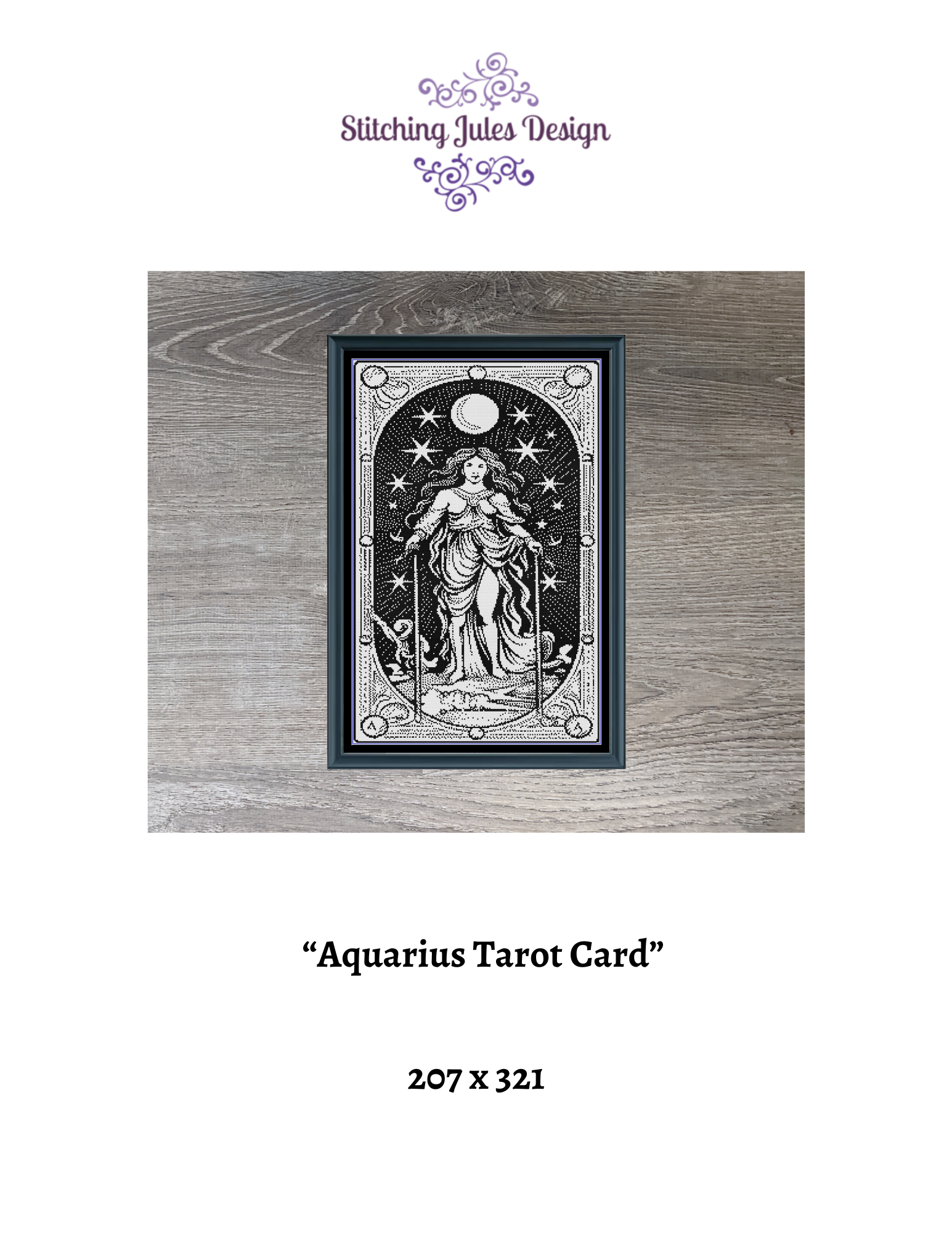This monochrome Aquarius Tarot Card is a counted cross stitch pattern that will be both easy to stitch and quick. The pattern is very easy to read and is suitable for an intermediate cross-stitch enthusiast.