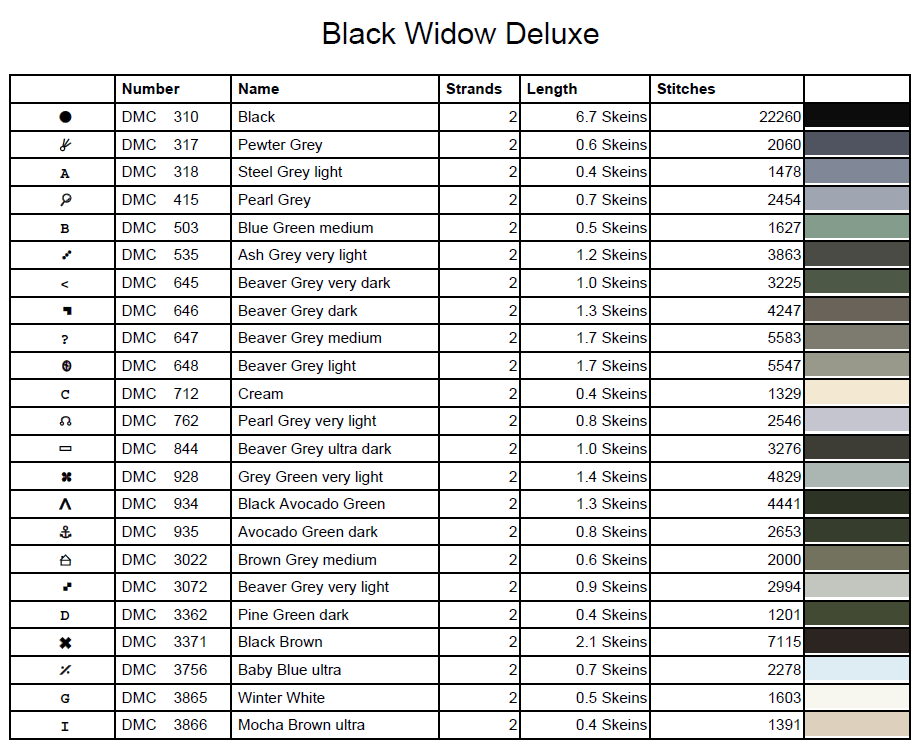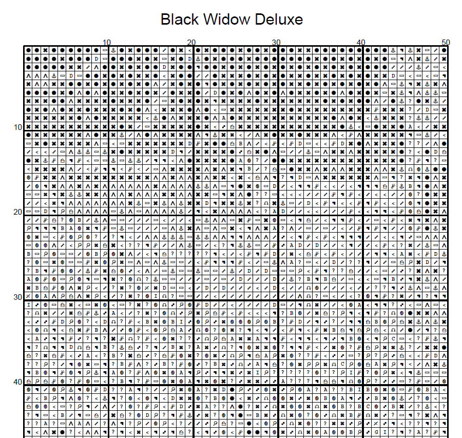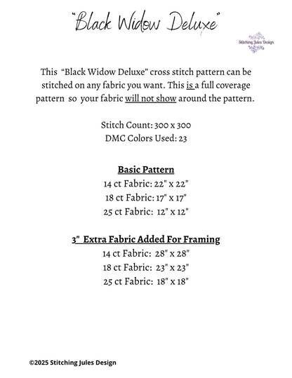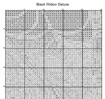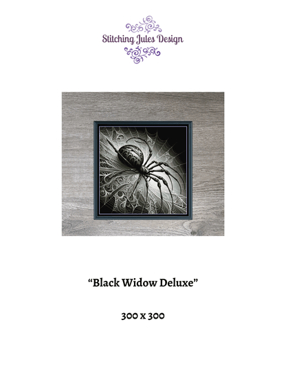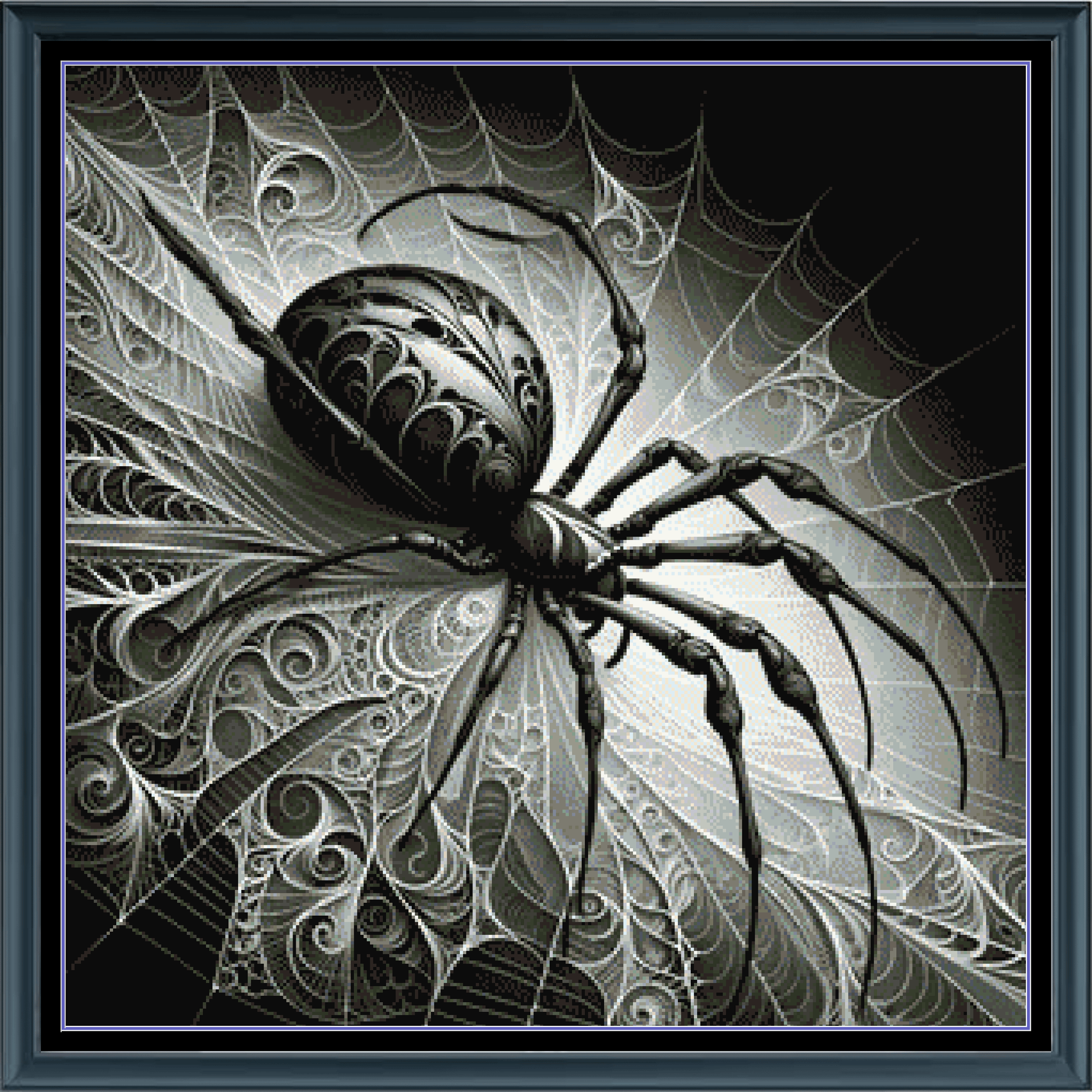 Black Widow Deluxe is a counted cross stitch pattern depicting a scary black widow spider in her own web. This counted cross-stitch pattern is a large, full-coverage work of art. It uses only full cross-stitches and has an easy-to-read pattern.