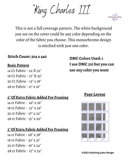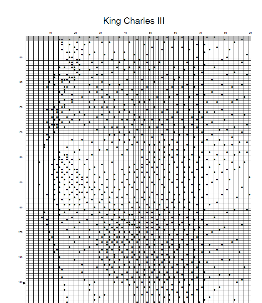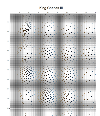 This counted cross stitch pattern is easy to follow and, upon completion, will be a beautiful piece of art to decorate your home or to give as a memorable gift. You will not find a better-looking, higher quality cross stitch pattern of King Charles III.