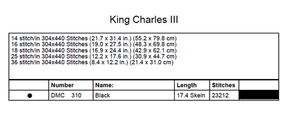 King Charles III Cross Stitch Pattern | Royalty Cross Stitch Pattern | Blackwork | Instant PDF Download And Physical Pattern Options