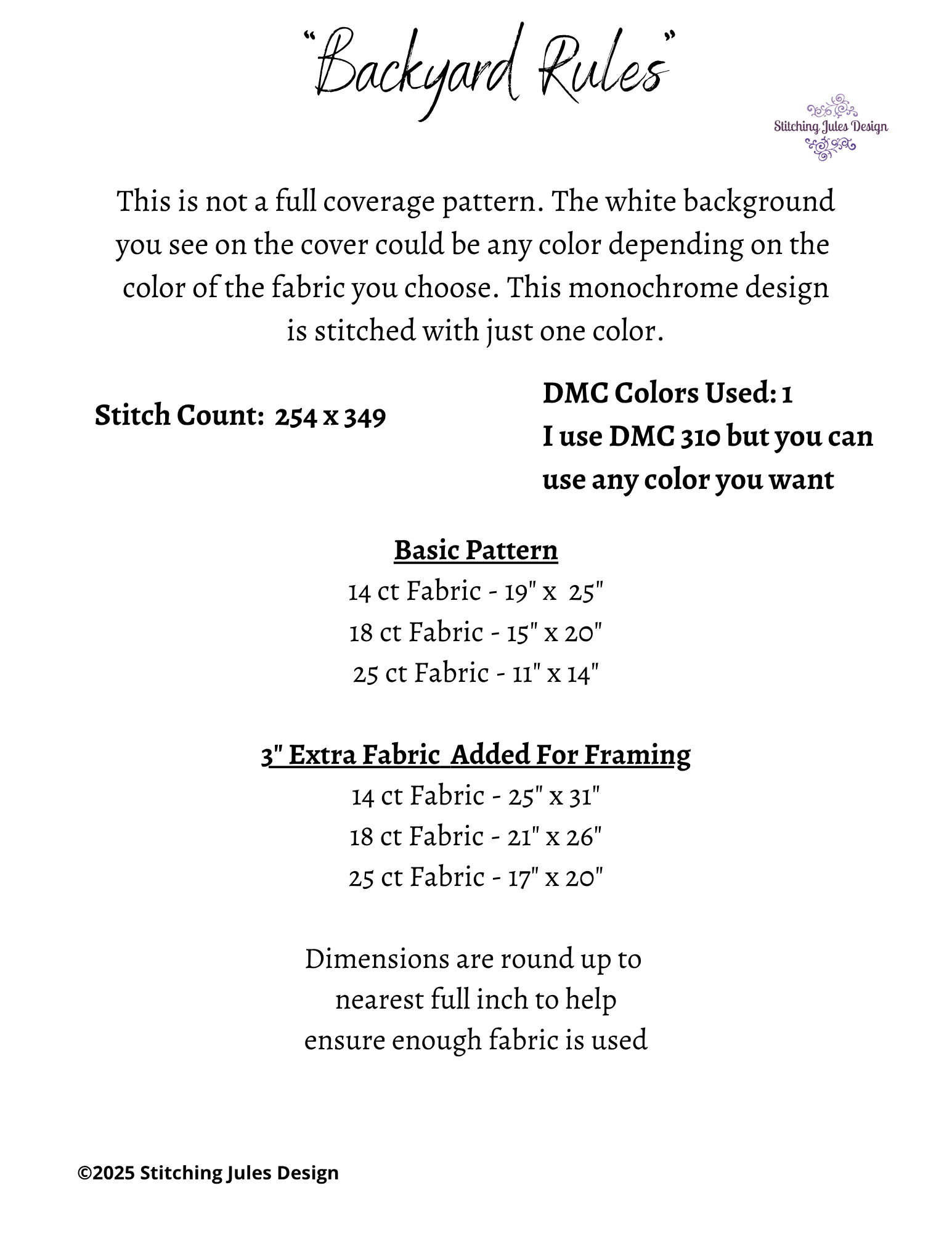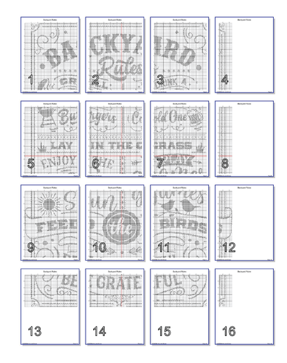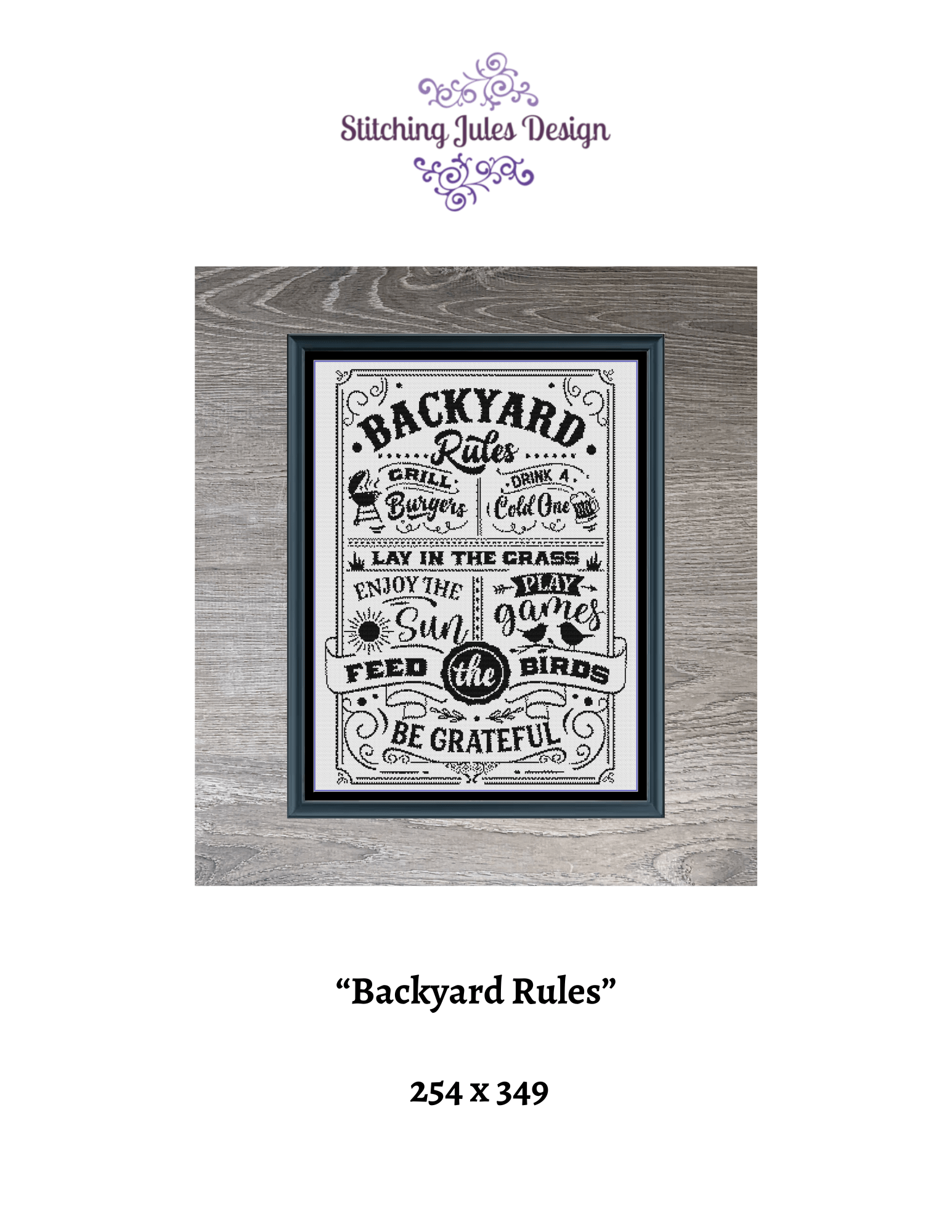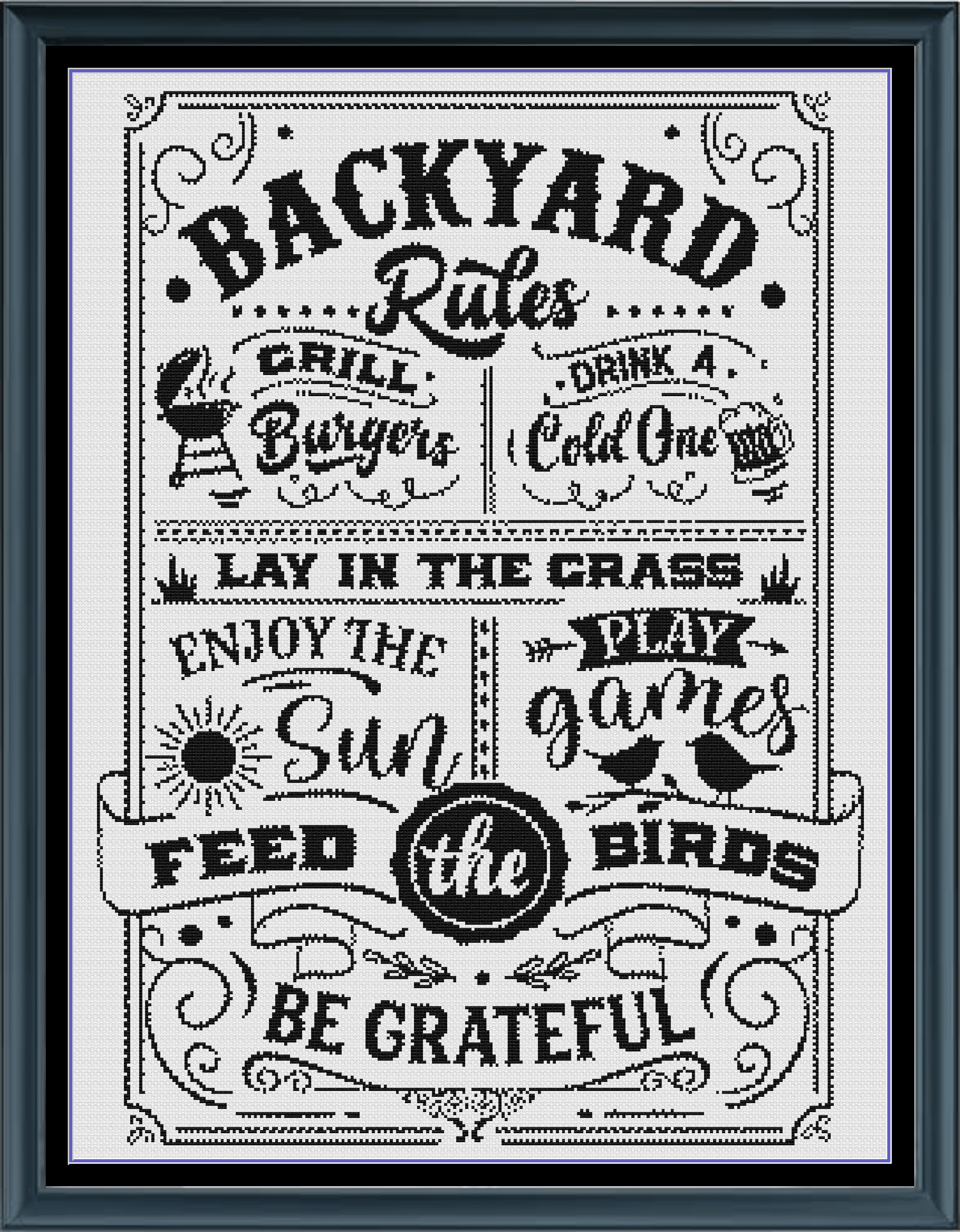 Backyard Rules House Home Family BBQ Pool Monochrome Black White Counted Cross Stitch Pattern PDF Digital Download Pattern Keeper Ready